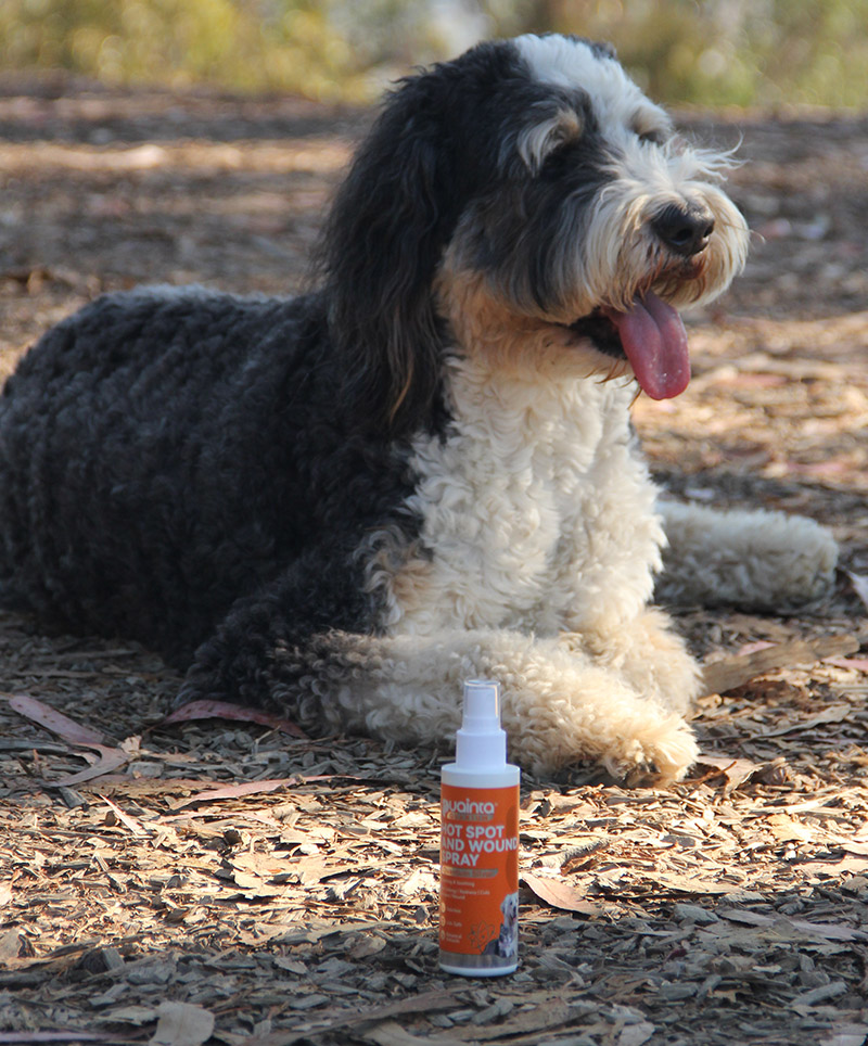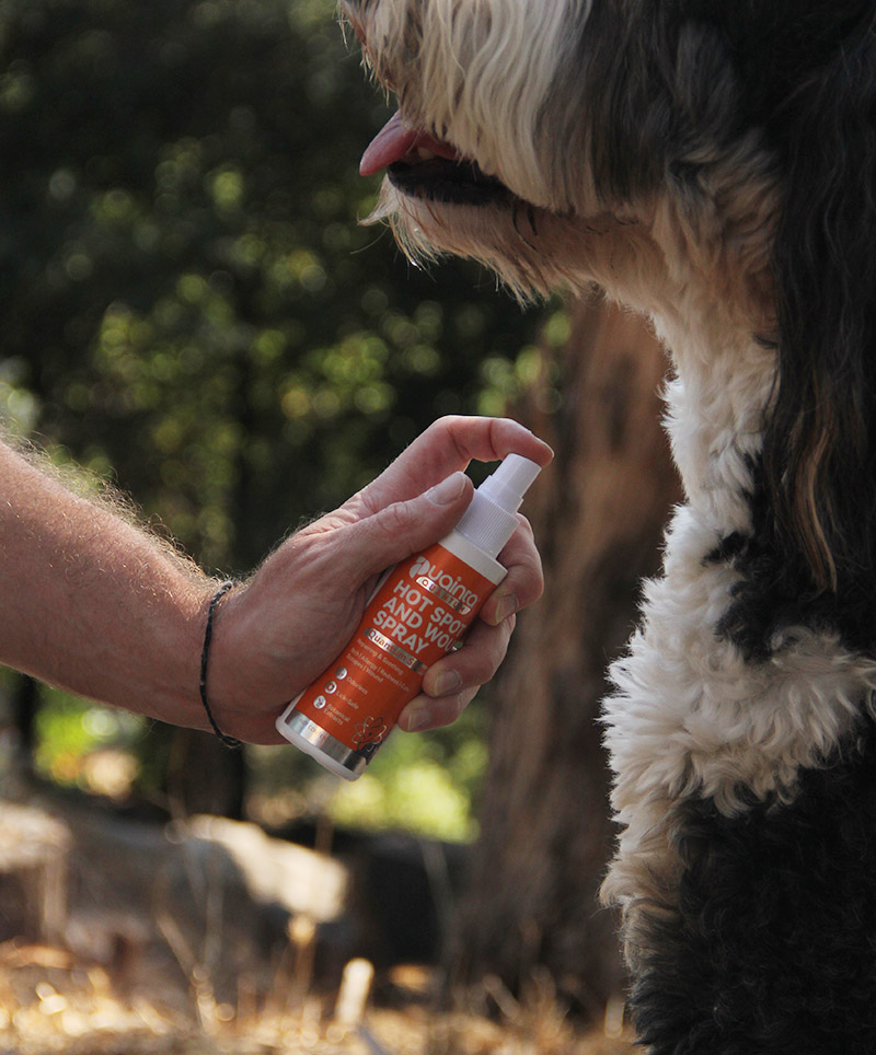 • My dog doesn't mind this on his raw spots, and it doesn't sting at all.